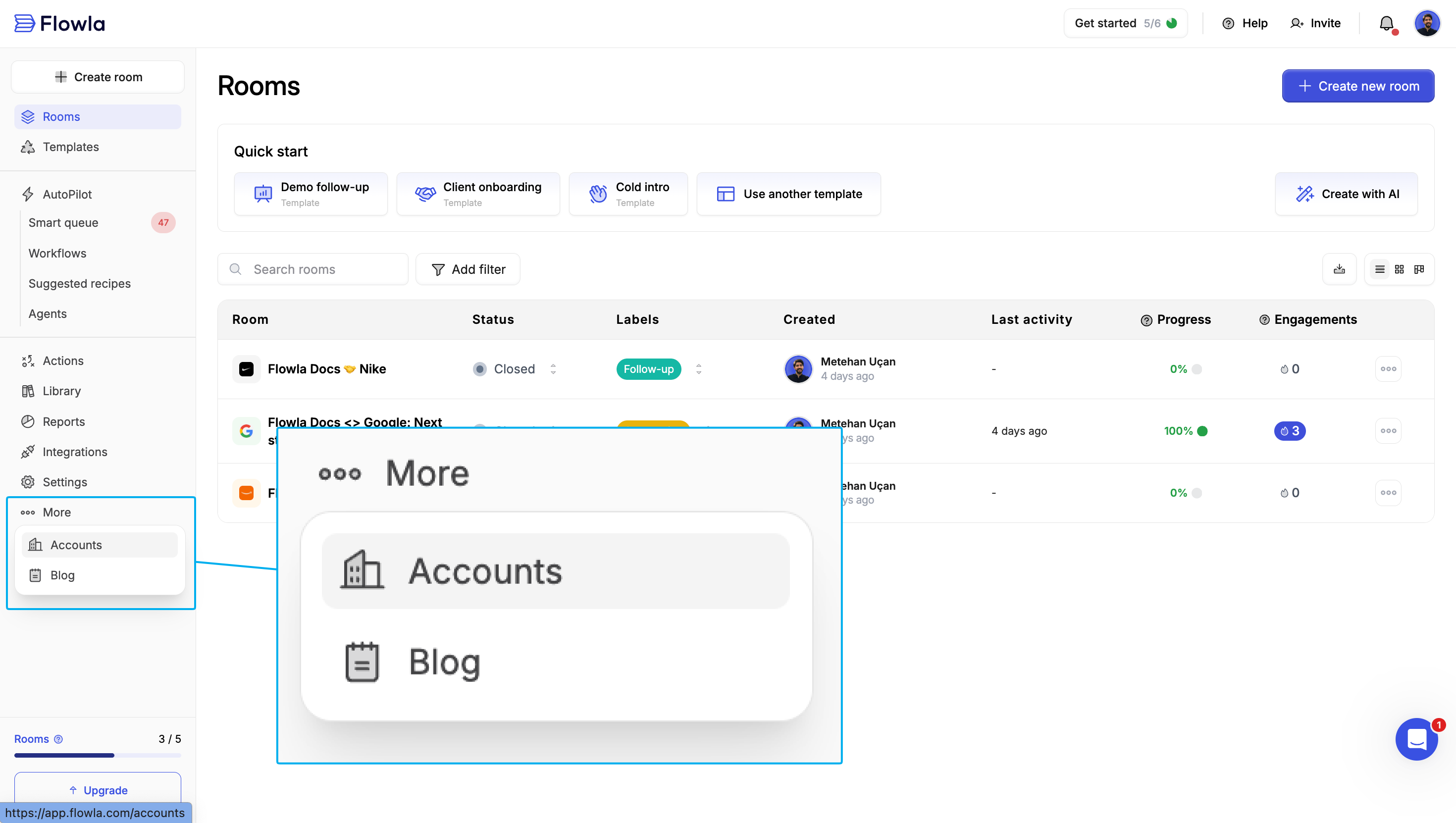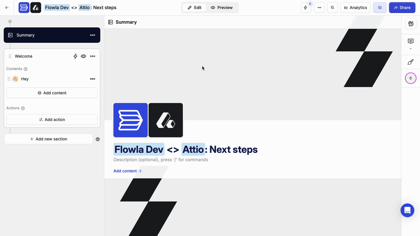 - Flowla automatically pulls the deal’s company information and enriches branding and logo